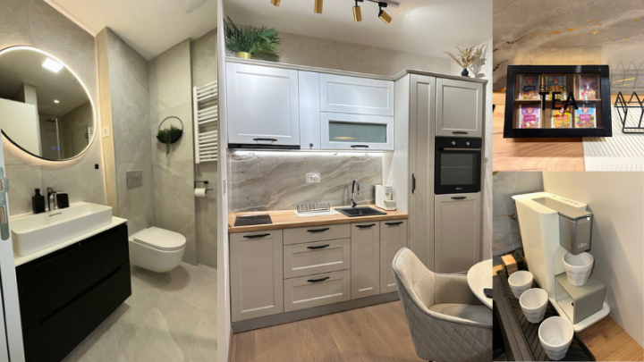 Ovaj smeštaj ima dnevni boravak, potpuno opremljenu kuhinju sa frižiderom i aparatom za kafu, kao i kupatilo sa tušem i besplatnim toaletnim priborom. Apartman raspolaže sa jednom spavaćom sobom sa francuskim ležajem. Gostima je na raspolaganju flat-screen televizor sa satelitskim kanalima.