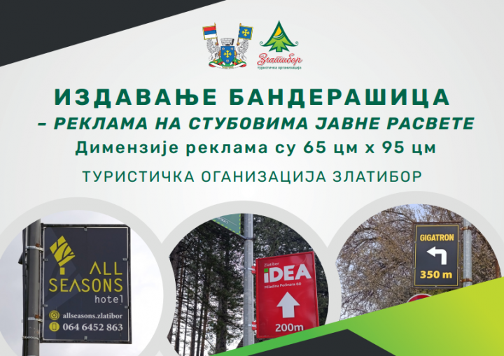 Delatnost izdavanja reklamnog prostora na stubovima javne rasvete (banderašicama) poverena je Turističkoj organizaciji Zlatibor na osnovu odluke Opštine Čajetina.