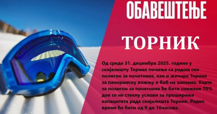 U ski centru Tornik od 31. decembra počinje da radi ski poligon za početnike