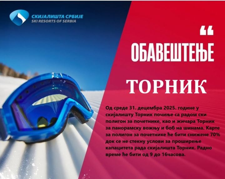 Od srede 31. decembra 2025. godine u skijalištu Tornik na Zlatiboru počinje sa radom ski poligon za početnike, kao i žičara Tornik za panoramsku vožnju i bob na šinama. Karte za poligon za početnike će biti snižene 70% dok se ne steknu uslovi za proširenje kapaciteta rada skijališta Tornik.