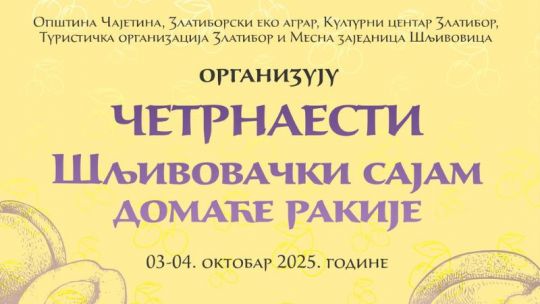 Tradicionalni 14. Sajam domaće rakije – „Rakijada“ biće održan 4. oktobra u porti crkve Svete Marije Magdaline u zlatiborskom selu Šljivovica. Manifestacija ima za cilj očuvanje i promociju višestovekovne tradicije proizvodnje rakije od šljive.