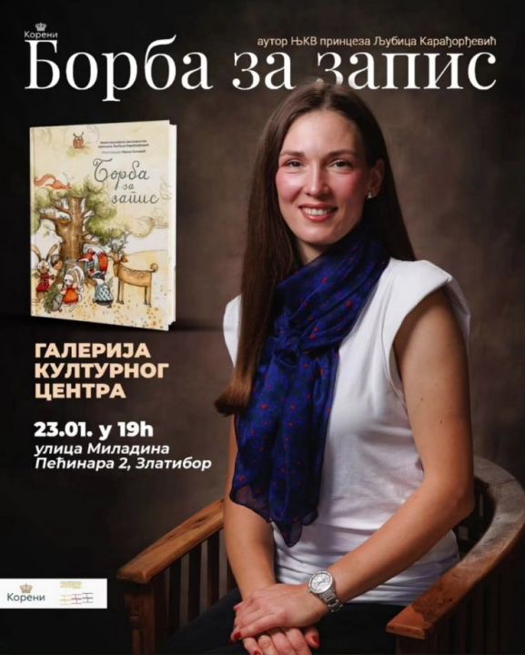 NJeno Kraljevsko Visočanstvo LJubica Karađorđević predstaviće svoju knjigu ,,Borba za zapis” u petak, 23. januara, u 19 časova, u Galeriji Kulturnog centra na Zlatiboru.